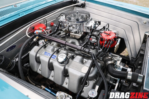 Backing up the big-block is a C6 three-speed automatic transmission with a reverse manual valve body and transbrake. Bolted to that is a Gear Vendors overdrive unit—the choice of many drag-and-drive competitors—for great cruising speeds. With the big, tall tires and 3.70:1 ring and pinion ratio in the rearend, the engine RPM stays calm at highway speeds.