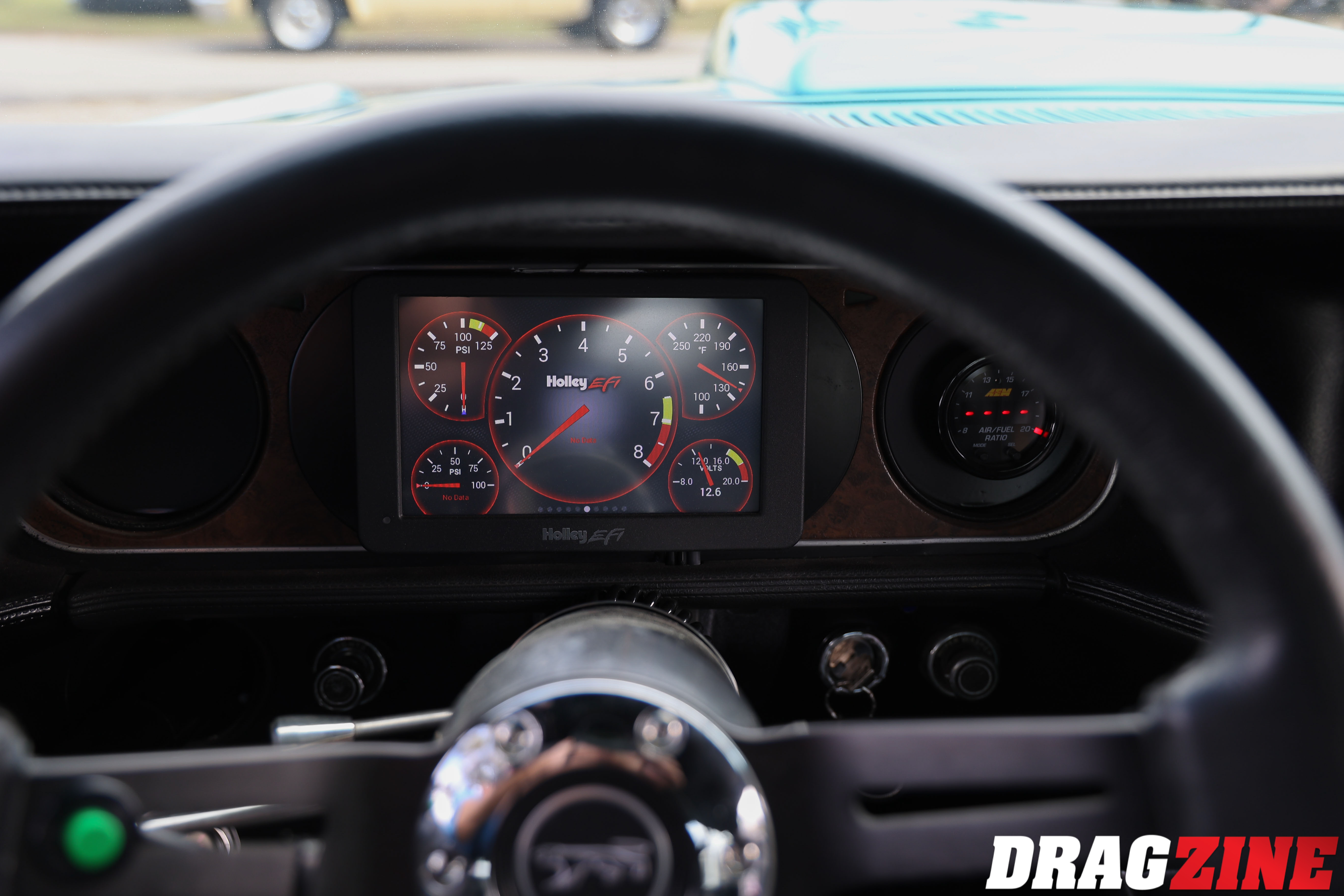 The engine is a Jon Kaase Boss Racing Nine that displaces a massive 547 cubic inches. It’s built off of an A460 block that was stuffed with Diamond pistons and Lunati connecting rods and crankshaft. For ease of maintenance and longevity, the engine utilizes a Comp Cams hydraulic roller camshaft, and it’s topped with Kaase Boss Nine cylinder heads, and a Davinci carburetor.