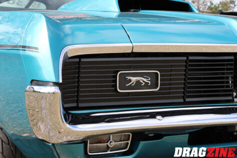 Bartram purchased the Cougar around 2016 and began making the necessary changes. The orange paint was removed and replaced with Ford’s 1969 Gulfstream Aqua hue, and Bartram added Cougar Eliminator touches to liven the car’s exterior appearance further.