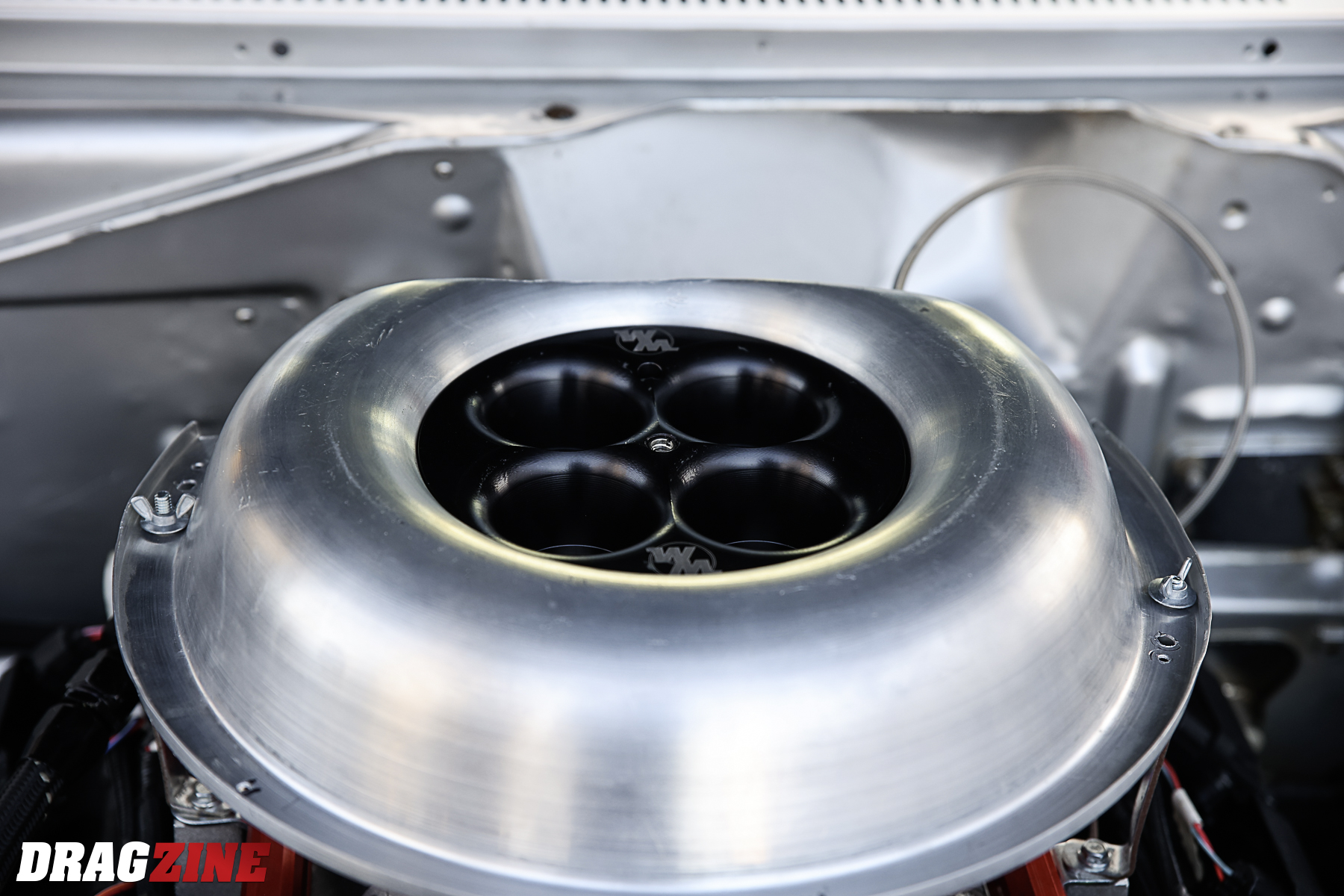 With its stock front suspension and four-link-style rear suspension, Maddox’s daring Dart sits elegantly atop its Goodyear rubber-wrapped Race Star Wheels. Tucked neatly between the Mark Williams rear axles is a matching, upgraded Mark Williams rear end. Similarly, Mark Williams brakes can be found at all four corners, as Maddox trusts the brand not only to handle the Mopar’s power transfer but also to keep him safe.