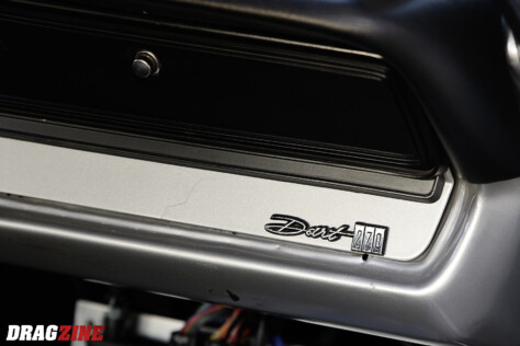 On the outside, the beautiful B&B Race Cars-built Dart was a picture-perfect representation of the era in which it had originally rolled off the production line in Detroit. “It was acid dipped, and B&B handled the paint and bodywork process to perfection,” noted Maddox. “When it’s at the track next to my Drag Pak, which is cool, people will walk right by the Drag Pak to look at the Dart!”