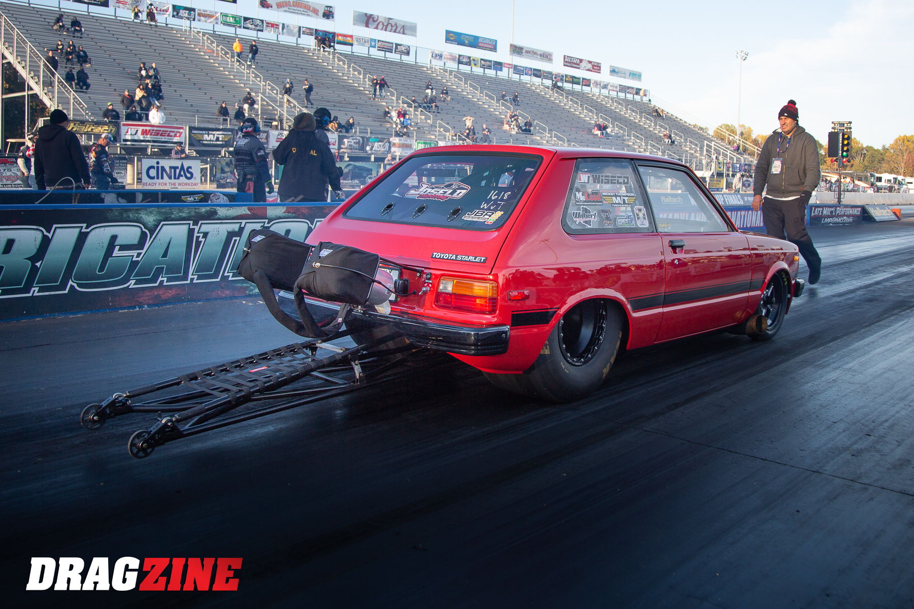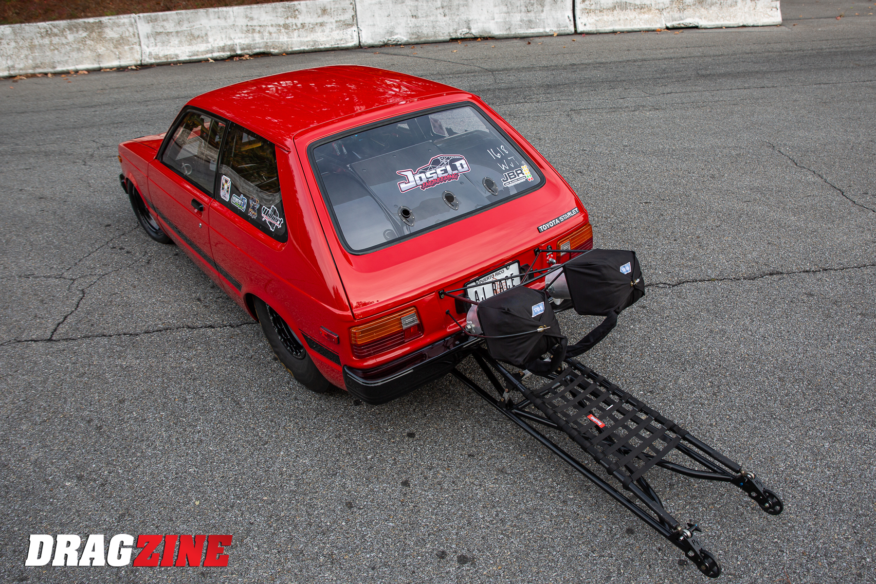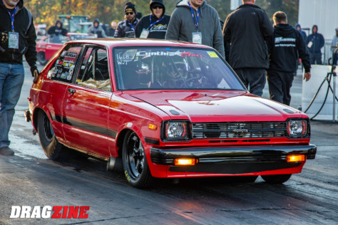 The car recently made its debut at the Haltech World Cup Finals at Maryland International Raceway in Mechanicsville, MD. Jose enlisted the help of his good friend Camilo BadBunny Velez to run the Starlet through its paces. On its first pass, the Cynthia Starr turned in a 7.11 ET at more than 189 mph. Camilo was only supposed to make a half-pass, but the car was running strong and straight so he kept his foot in it all the way through the back door. That run was good enough to get them qualified 18th in the 32 car field of the Warriors vs Tres Cuarto class. Not bad for the first time out.
