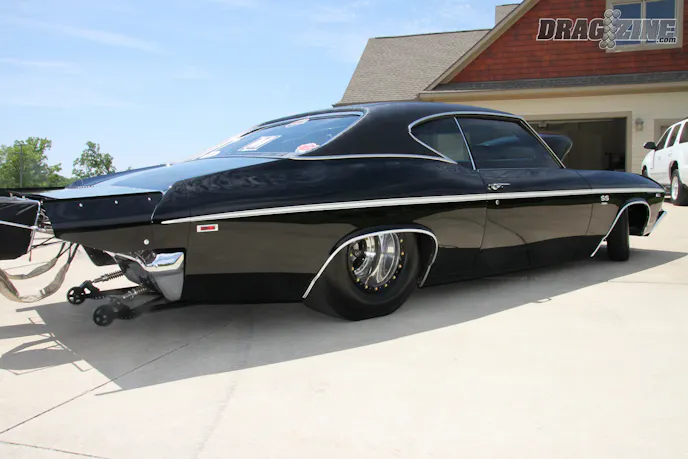 Even though its eleven-second elapsed-times weren’t competitive, it served as an entry into heads-up racing, and it wasn’t long before he committed to stepping up and bought the ’69 Chevelle he has now as a roller in ’05. After repeatedly referring to it as a “hoopty,” he stripped from it everything but its roof, firewall and rocker-panels.