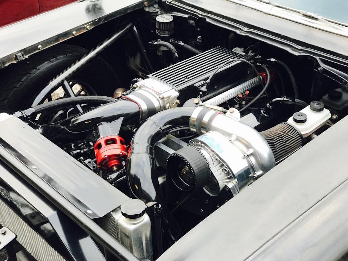 For power, David assembled a 360-inch small-block Chevy with an F-1R ProCharger that’s backed by a Rossler two-speed Turbo 400 and a Gear Vendors overdrive.