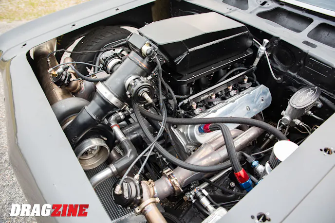 The Nova makes plenty of boost thanks to the single 88mm Garrett GTX 5533R Pro Mod turbo that is stationed at the front of the car. A pair of VS Racing blow-off valves and Precision Turbo & Engine wastegates ensure the boost stays at the exact level PSR Performance commands. To keep all the boosted air nice and cold, Luis added a water-to-air intercooler from Tick Performance. Transmission Specialties was selected to build a stout Powerglide transmission that’s paired with an FTI bolt-together torque converter as part of the Nova’s drivetrain.