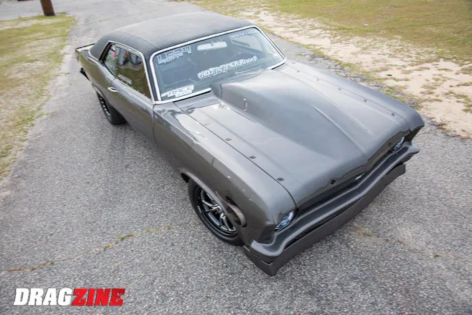 The Nova still retains a steel roof and quarter panels; the rest of the body panels are composite parts from Glasstek. Luis was never a fan of the yellow paint that covered the Nova originally, so he had PSR Performance spray it with Shark Steel Gray, a color found on the C7 Corvette.