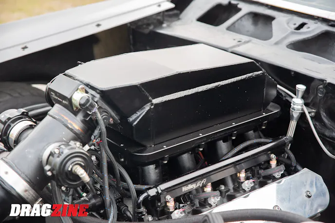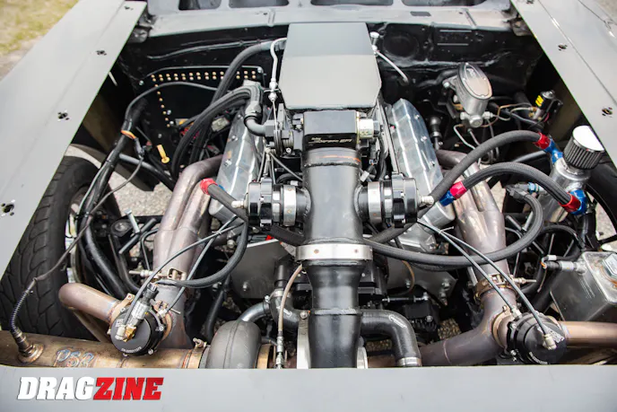 The Nova makes plenty of boost thanks to the single 88mm Garrett GTX 5533R Pro Mod turbo that is stationed at the front of the car. A pair of VS Racing blow-off valves and Precision Turbo & Engine wastegates ensure the boost stays at the exact level PSR Performance commands. To keep all the boosted air nice and cold, Luis added a water-to-air intercooler from Tick Performance. Transmission Specialties was selected to build a stout Powerglide transmission that’s paired with an FTI bolt-together torque converter as part of the Nova’s drivetrain.