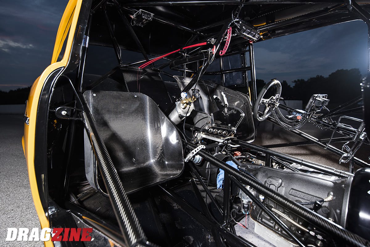 Lutz hired Jerry Bickel Race Cars in Missouri to build a rear-end featuring a Strange floater and a Strange center section, and when it was time, they installed into the car a 540 cubic-inch big-block Chevy engine which Lutz built in collaboration with Mark Vinson of Vinson Race Engines. It’s topped with Pro-Filer heads and an intake by Pro-Filer and Boninfante Friction, and Lutz relies on a Big Stuff 3 engine management system for tuning.