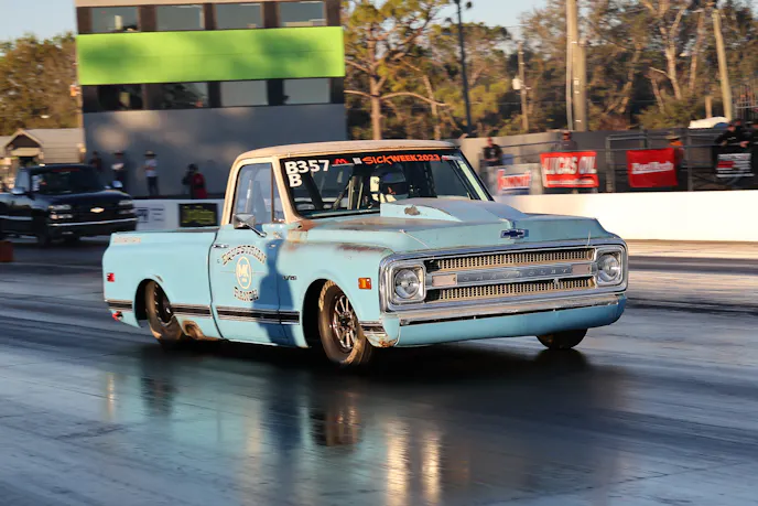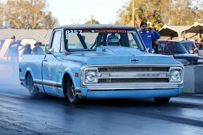 Clift and his wife Kathy made the trek from Oregon to Florida for the 2023 Sick Week event, which was the second year for the drag-and-drive competition. The quickest he had been on track was low 11s behind the wheel of his First-Gen Camaro, and going into the event, his new C10 build was packing double the horsepower. The chassis design put Clift’s truck into Sick Week’s Ultimate Iron class, which features some of the quickest vehicles you’ll find participating at the event.