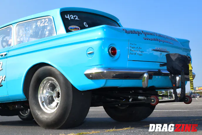The Gasser interest for Jack wasn’t exactly an impulse, as his father, Jack Sr., competed years ago at surrounding St. Louis tracks with a nailhead-powered ’51 Chevy sedan. The project rebuild was a little slow- going at first. Jack lost his father while the project got underway and then he also had to undergo knee surgery early in the process.