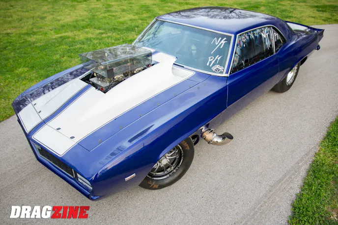 “About two years ago I purchased this Camaro to replace the Nova. It was another former bracket car but it had a roll cage in it and was better overall. When I bought the car we put nitrous on it right away, just like the Nova, but it still wasn’t fast enough. I wanted to run with the fastest guys at the track like Jonny Quick and Motor City Jimbo. I had no idea at the time how far the car would progress and that it would get to the point it is today,” Danny says.