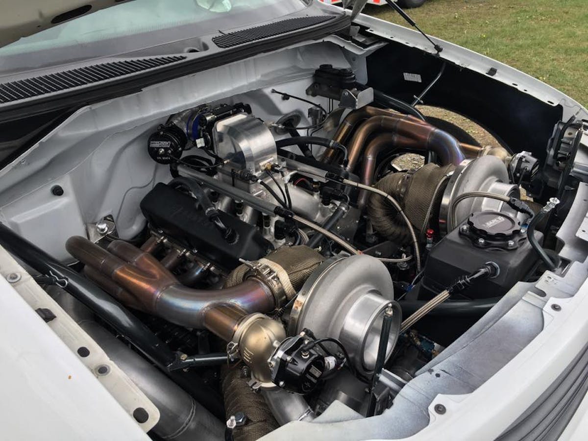 To start things off, Dolan sent the truck to Paul McDermott at Outlaw Racecraft to get all the chassis work done for the pending powerplant upgrades. Not wanting a Ford Mod motor for the Yetti, Dolan reached out to Jon Bennett at Bennett Racing Engines to get a 417 cubic inch small-block Ford engine built. A pair of 88mm Bullseye Power Turbos create the boost, while a Turbo 400 transmission from Mark Micke at M&M Transmission puts the power down.