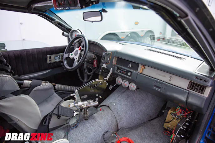 The heart of Whalen’s Cutlass Calais is a 350 cubic inch engine rated by the NHRA at 255 horsepower, though it’s clear the motor is pushing much more than that. “It’s a 350, 255 horse, carbureted motor,” Whalen explains. The engine was built by Larry Allen out of Winnemack, Indiana, a trusted name in high-performance class racing builds. The transmission setup is a Pro Trans 350 Hydro, ensuring as little precious horsepower is lost in the driveline as Whalen competes against the GT/GA index and his competitors in heads-up competition at the highest levels.