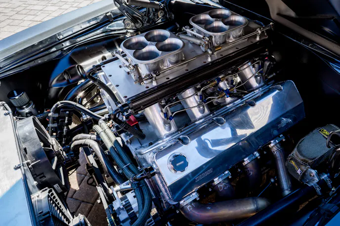 The business part of this build begins with a custom CN billet block designed to run water through it for street cooling. The 5.3-inch bore space, 746 cubic-inch powerplant is designed to run on pump gas with an 11:1 compression ratio and is topped with Slick Rick cylinder heads, and NRC-built sheet metal intake manifold, and twin Accufab 4500-series throttle bodies.