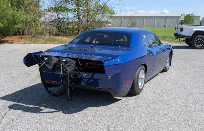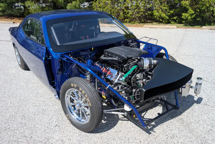 Santhuff front struts and rear shocks make up the core of the Challenger’s suspension, and the parts have been proven to plant the nearly two-thousand horsepower to the pavement. Meanwhile, crucial stopping power is provided by TBM Brakes at all four corners, and a set of classic RC Components wheels gives the Mickey Thompson radial rubber a home.