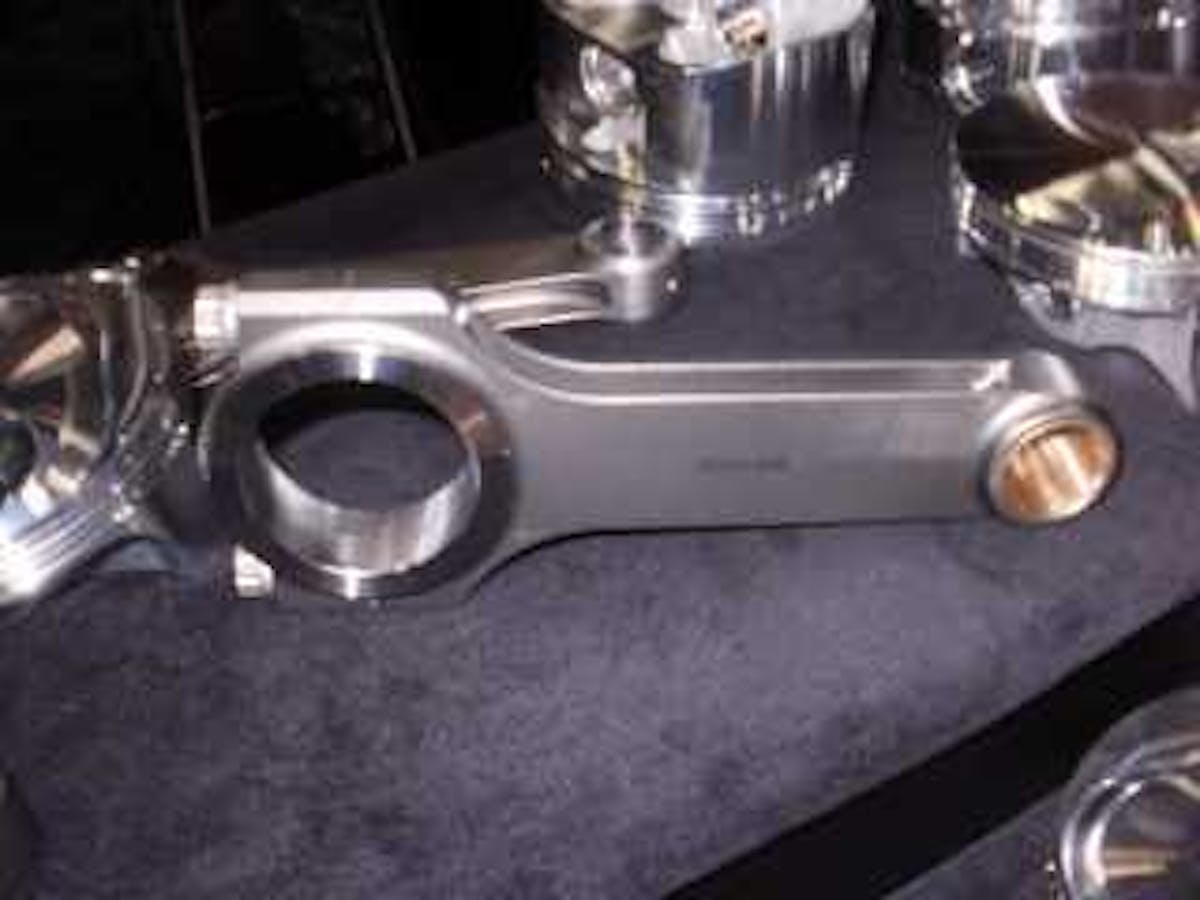 Also new for 2010 is a new big-block Chevy connecting rod with Honda crank pin size, available in either .927 or .990 wrist pin. Productions on these are starting now and are waiting to be approved by NHRA. All of these new rods eliminate the need for running a bearing spacer for undersized cranks. These meet NHRA rules for 2% lighter than stock and the length is +/- .025 of stock.