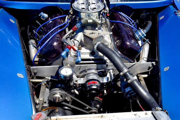 The Tyler’s completely constructed the tube chassis with a tubular A-arm front end and four-link rear suspension. Aldan American shocks control all suspension points. Along with the highly modified steel shell, the front hood and doghouse are fiberglass.