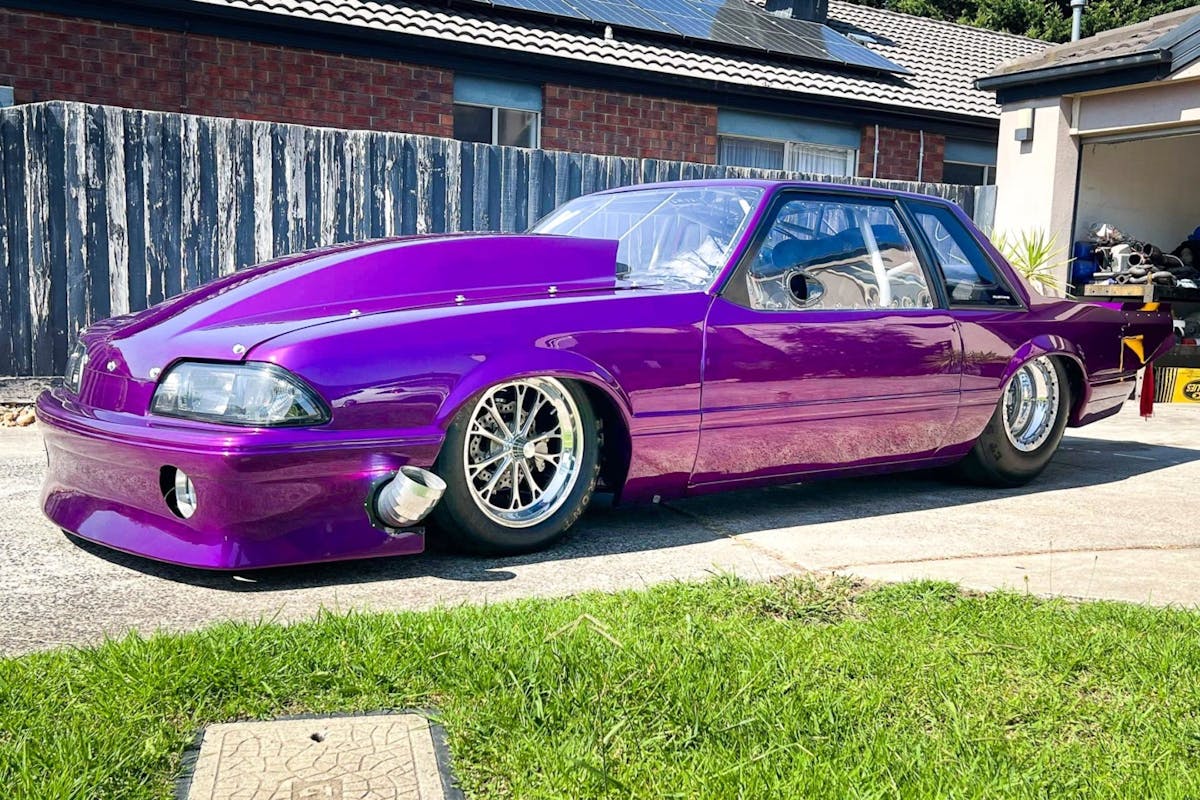 Melbourne, Australia native Daniel Nunziante has attracted a whole lot of attention on social media over the last week to his dazzling new ‘91 Ford Mustang radial-tire machine. The Fox body, finished in a one-of-a-kind Candy Violet by Custom Body Works in Sydney, is packing a punch equally as strong as its exterior under the hood, priming it to be a real player in the Outlaw Radial and Pro 275 categories down-under.