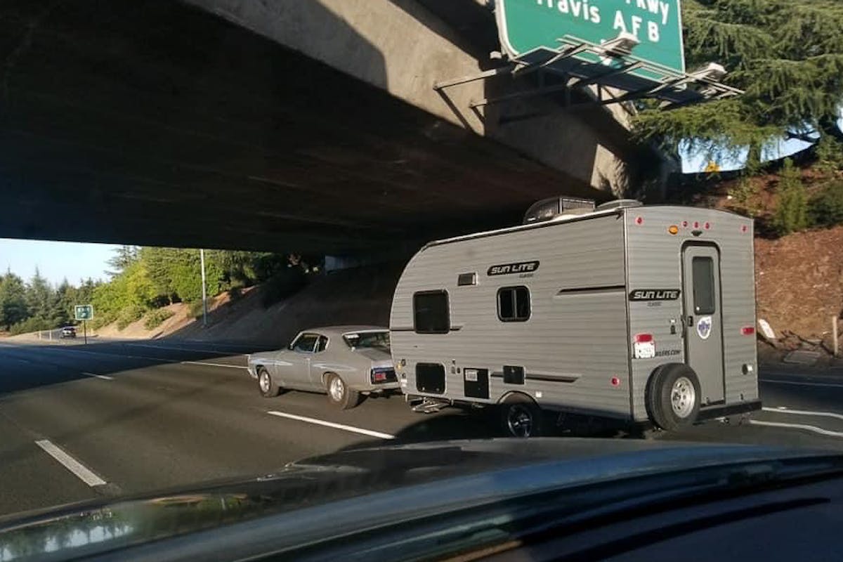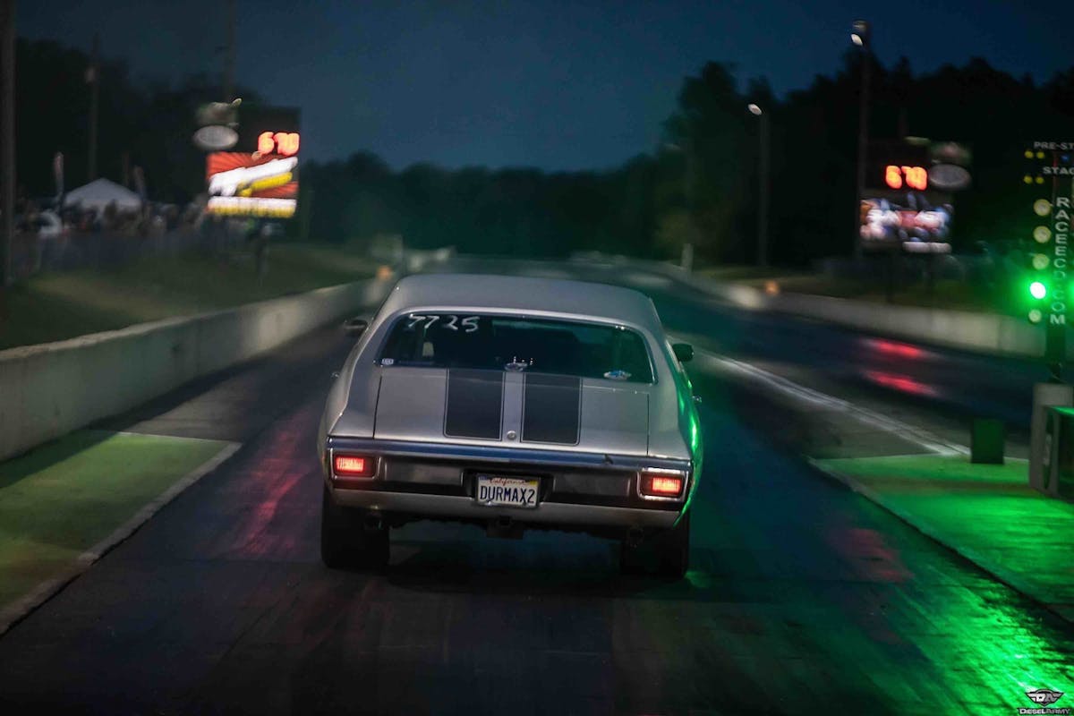 Last year, Fletes hit Dragzine’s radar when he drove halfway across the country in his Chevelle to compete at the Summit Racing Equipment Midwest Drags. There, we met up with Fletes, who showed us around his setup, complete with wheels and tires, and other equipment on a hitch-mounted rack, and the rest stuffed into the trunk and back seat. Like a complete badass, Fletes drove out to Ohio from California, did the entire drag-and-drive event, and drove right back home. Already this year, he’s driven from California to Florida and back, and intends to do it again if the coronavirus allows it.