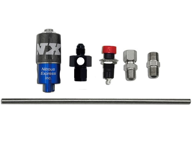 This System includes a Lightning solenoid, push button for activation, and a vent tube to direct the purged nitrous out of the solenoid.