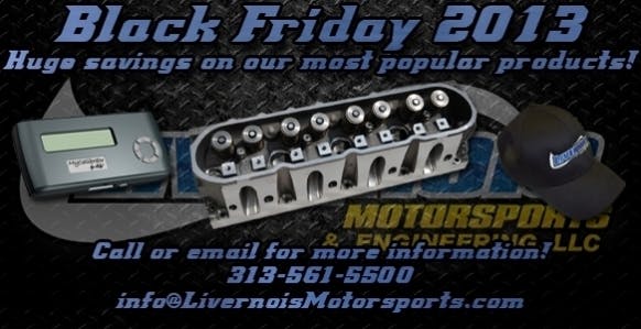 From November 25 through December 2, Livernois is putting some of their most popular products and services on sale. Get a shirt, hat, window banner, and emblem for just $29.99, an induction upgrade and tuner package starting at $499.99, or an LS1 head combo starting at just $999.99. They’re also offering 10% off all custom engine and cylinder head work, and 10% off on all installed vehicle upgrades. Call or click for full details on this Black Friday deal.