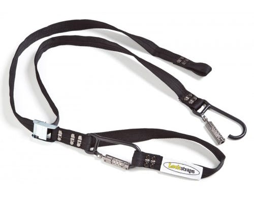 Tie down straps are a requirement for any serious drag racer. The race cars, pit vehicles, tool boxes, tires, and spare parts all have to be secured, and Lockstraps has just the answer with their Locking Tie Down Strap that allows you to set your own combination to keep the straps and your belongings safe. This product measures 8.5-feet long with a soft tie extension included for no scratching. It features two #64 hardened steel (Heat Treated) combination locking carabiners, 6.5 inches tall and 3 inches wide. Inside are eight braided stainless steel cables the full length of strap. Beefy galvanized steel rivets deter theft, with a 500lb. working load.