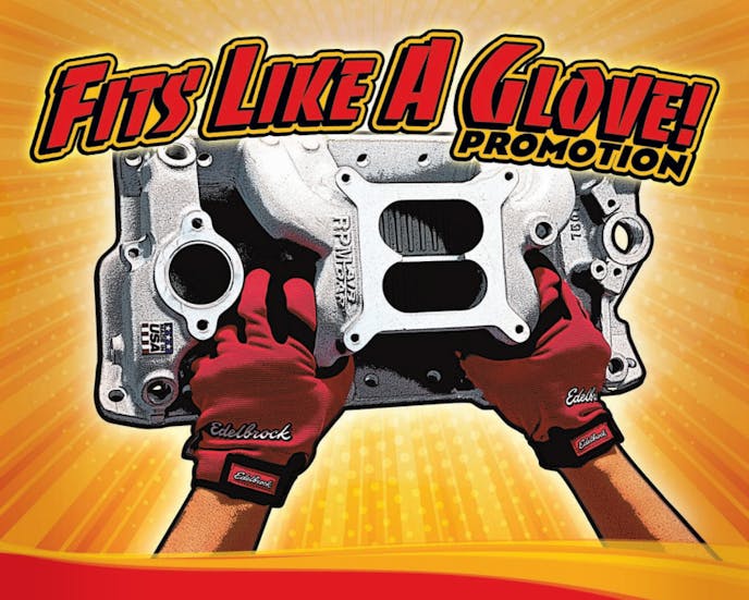 Get a free pair of mechanics gloves when you purchase any new intake manifold; whether it’s sold individually, with an EFI System, Power Package or even a Crate Engine. The gloves would be ideal for you or that special someone receiving a fresh, new Edelbrock product to keep hands from getting scratched or burned in those hard-to-reach areas. For complete promotion details and to download a redemption form, visit the official Edelbrock promotions website at www.edelbrock.com/promo.