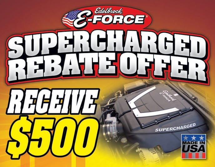 In celebration of Edelbrock’s 75th anniversary, customers can receive a $500 mail in rebate on select E-Force supercharger systems. We’re sure somebody in your life was good enough this year to deserve the gift of boost! for complete promotion details and to download a redemption form, visit the official Edelbrock promotions website at www.edelbrock.com/promo, because nobody likes getting a lump of coal!