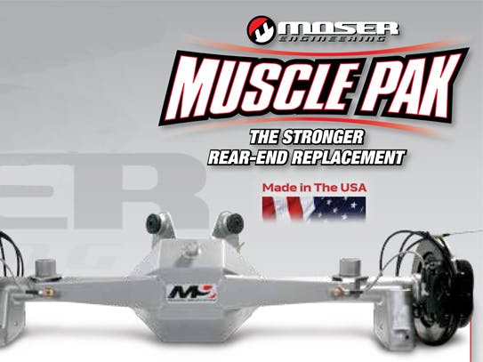 Moser Engineering now offers all of our most popular rear assemblies as a Muscle Pak option for all of the most popular makes and models. A Muscle Pak gives you a complete rear along with brake options, lines, and cables. It comes fully assembled and is direct bolt in to your stock applications suspension. Available for classic Chevys and Mustangs all the way up to the newest Generations of pony cars including Mopar. Moser Engineering even offers Muscle Pak options for trucks from Dodge to Chevy. Give them a call or check out their offerings online.