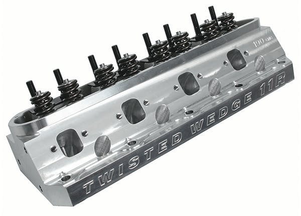 Trick Flow’s new Twisted Wedge 11R cylinder heads have all of the unique features of the original Twisted Wedge heads—Twisted Wedge combustion chambers and valve layout, high-flow/high-velocity intake runners, and top-quality valvetrain components—plus CNC Street Ported or Competition Ported runners and fully CNC-profiled Twisted Wedge combustion chambers for increased intake and exhaust runner flow, exceptional cylinder-to-cylinder compression, and improved flow balance. Trick Flow Twisted Wedge 11R cylinder heads come with 10° valve locks and retainers, 7/16″ rocker arm studs, and 1/2″ diameter head bolt holes.