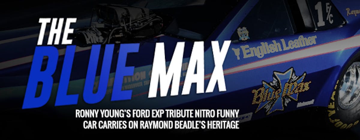 In the fall of 2014, Young debuted the latest edition of his Blue Max arsenal with his 1981 Ford EXP–bodied machine at Ardmore Dragway in Ardmore, Oklahoma. The original EXP body was short lived, seeing competition in 1981 and 1982 until it returned to Charlotte and was converted to a show car for Winston. Thirty years later, Beadle himself found an original 1985 Tony Casarez Blue Max chassis which was then owned by Funny Car racer, Bob Gilbertson. This car became the current Blue Max Funny Car fans see today. Young and his team are thrilled to still be racing an original Blue Max chassis and body, which have both been through modern safety updates and are NHRA Heritage Series–legal.