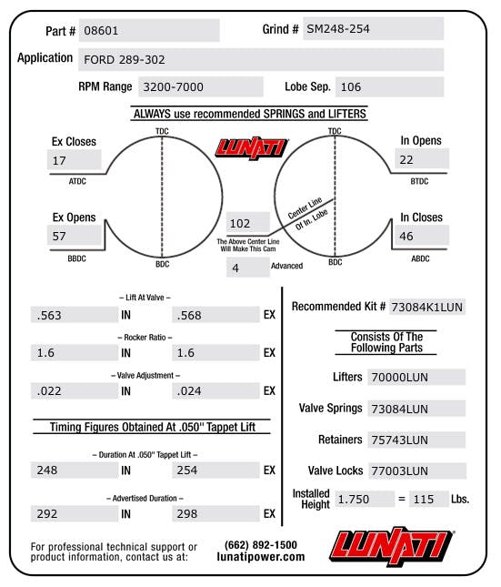 I would love to step up to a Lunati cam and actually do some serious racing. I have the skills, I just need some help with parts and $$$. I wear your shirts proudly, and I’d love to put your decal on my car. Thank you, sincerely, a satisfied customer. I would like a 08601 camshaft if that’s okay.
