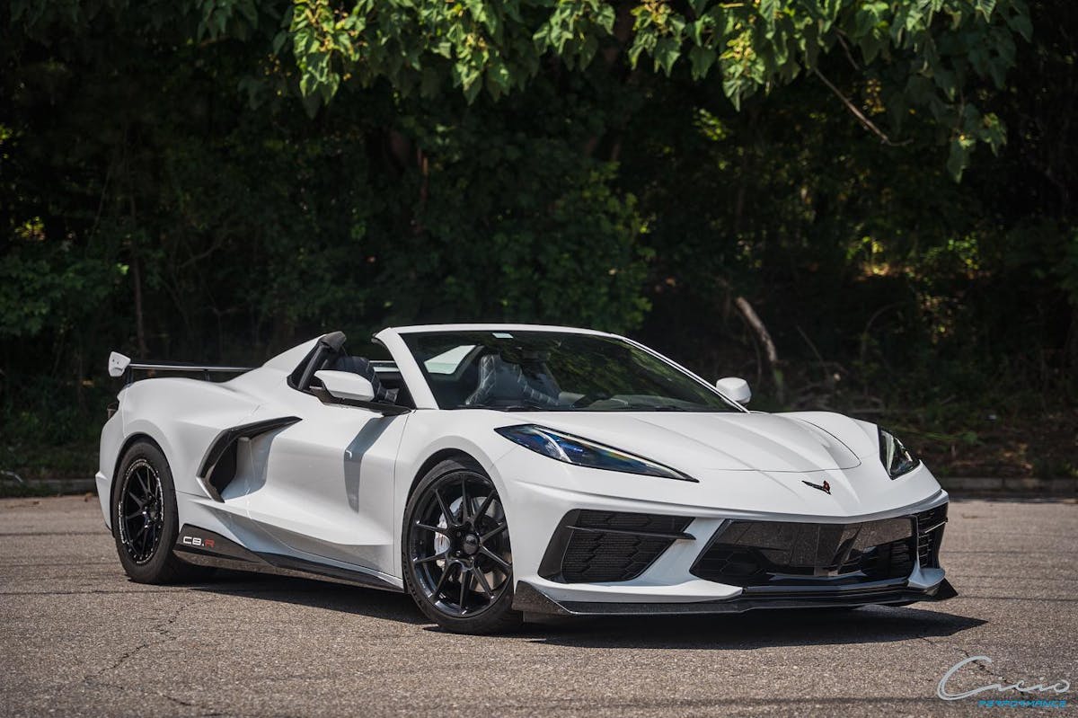 Bill Calhoun’s incredible 2022 Chevrolet Corvette C8.R sports Cicio’s C1100 package. It’s powered by a 1,100 horsepower Cicio-designed and built LT2 upgraded engine with a Cicio twin turbo kit manufactured by ETS and upgraded fuel system. And it rides on Cicio lowering collars, Michelin Pilot Sport front tires on 19×9-inch one piece forged monoblock GS1R wheels, and Mickey Thompson ET Street S/S rear tires on 18×11-inch Forgeline forged monoblock GS1R Beadlock wheels finished in gloss black.