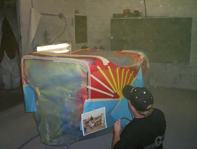 The original wing used by the Jackson’s was still on the car when the Callen’s purchased it. The body is also the original used by the Jackson’s, and has had roughly nine coats of paint stripped to allow for a fresh start for the retro paint work. Gordon Boven’s Custom Works of Garden City, Idaho painted the car from a limited number of old faded photographs to recreate the scheme Las and Cal Jackson liked most. All of the lettering was done by Bob Shaw of Signs by Smith using those same photos that Boven had used.
