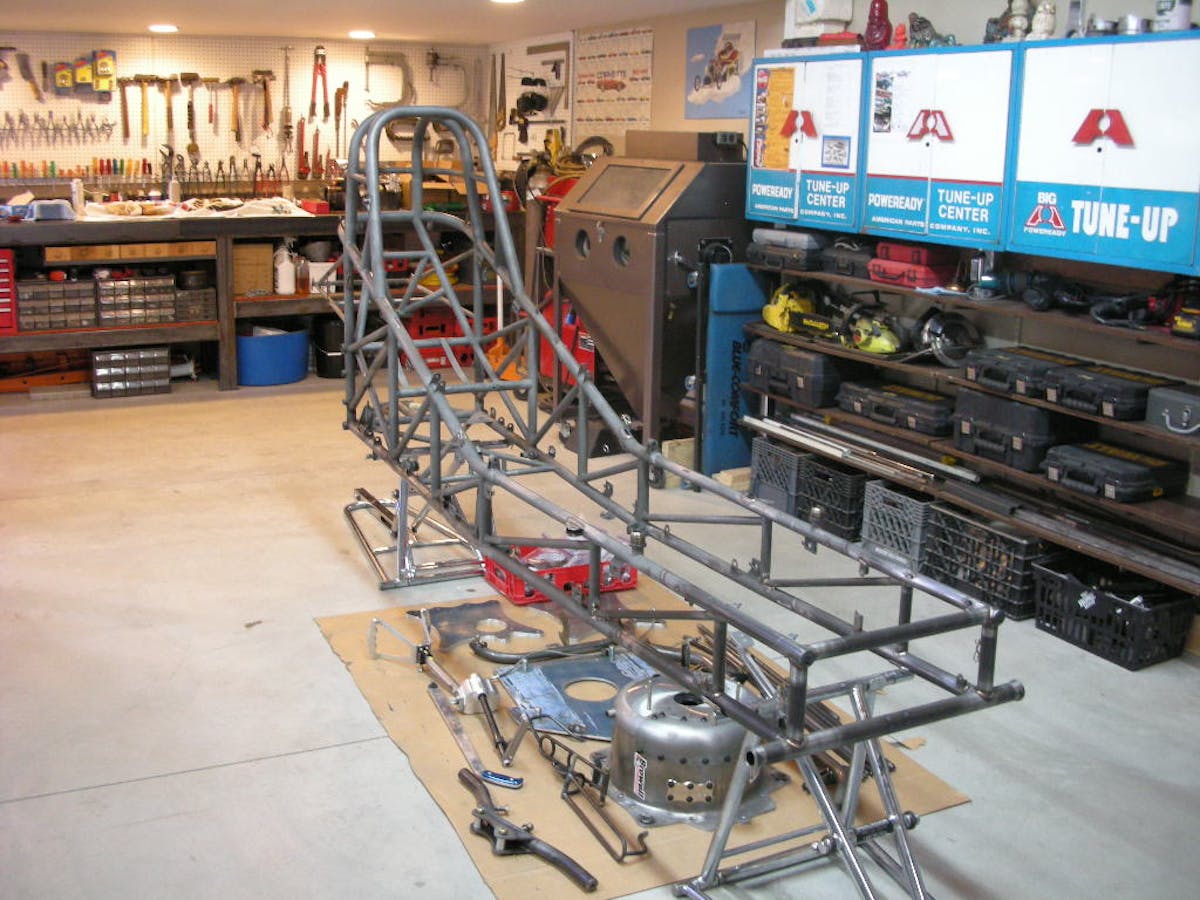 Because the Callen’s have chose to finance the entire operation themselves, their first order of business was to sell the engine out of Mighty Mouse to a good friend of Hughie and Shawn’s back in Alaska. That done, restoration began with building a new engine in January of 2010. In May they began the chassis work and in September the body work. The restoration was completed in March 2011, and to celebrate, they flew Les and Cal Jackson to a small party to unveil the car. Everyone involved in the restoration was there, and as luck would have it, Mike Peek, the original chassis builder from Denver, happened to be driving through Boise and made a stop to join in the celebration.