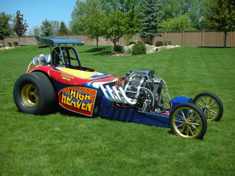 Complete and ready to run, the re-born Hugh Heaven weighs in at just 2,060 pounds with the driver, making it light and nimble as the classic Fuel Altereds typically were.