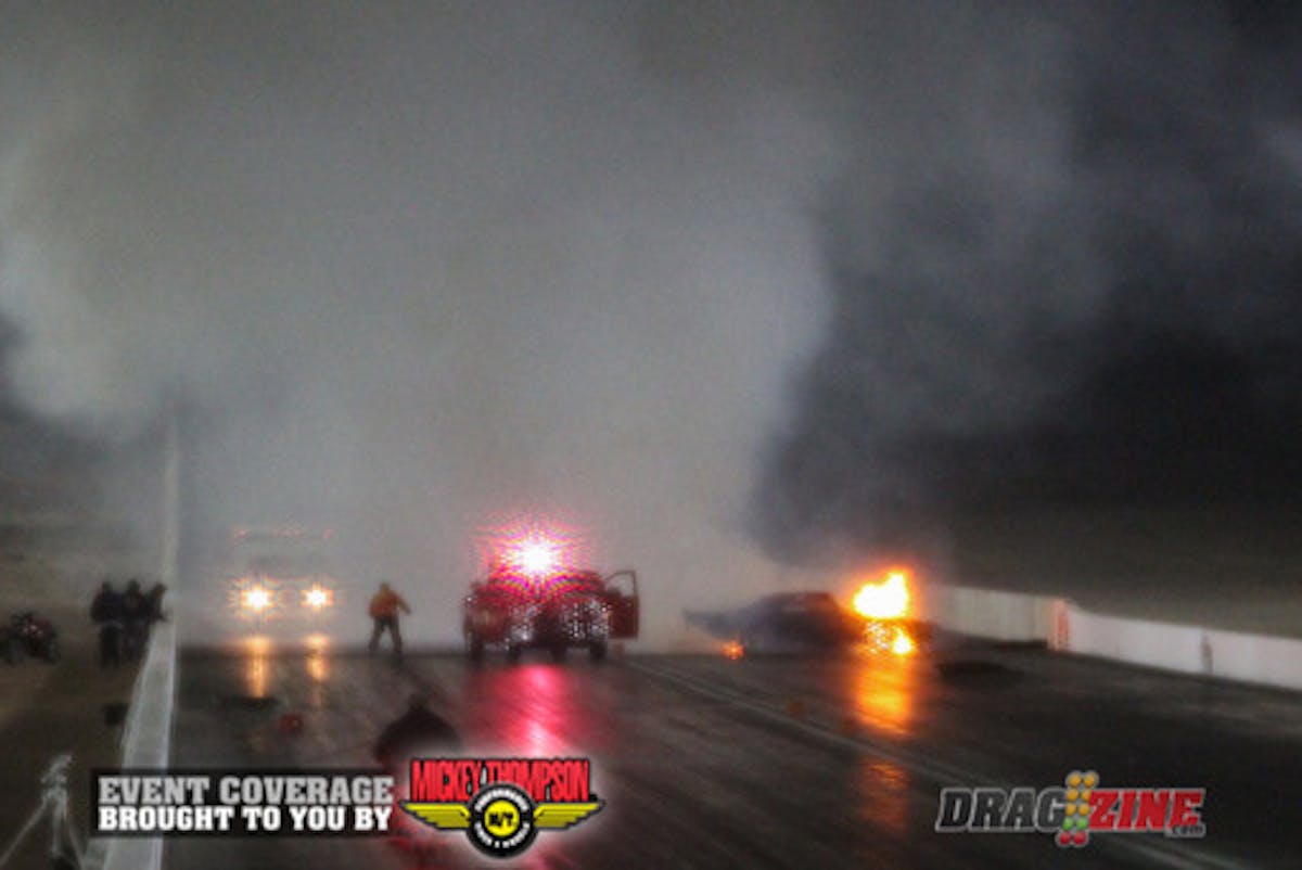 “Looking back, I’m thankful that I had all the proper safety equipment and then some; I went above and beyond what was required. I had Funny Car boots and a HANS device on, and I carry twenty pounds of fire suppression in the car, but I never hit any of it. They said I was trying to reach for the switch when they got to the car, even though I was knocked out cold.”
