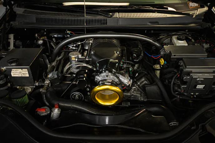 The MMX group turned AZN’s “Jeeper Sleeper” around in no time flat. Complete with a ProCharger F-1A-94 centrifugal supercharger, upgraded engine internals, ported factory intake with Hellcat throttle body, a Suncoast-built five-speed transmission, “Jeeper Sleeper” puts out more than 900 horsepower on E85 pump fuel…and that’s not including the extra that comes from the Nitrous Express bottle tagging along in the back of the Jeep alongside AZN’s other random cargo.