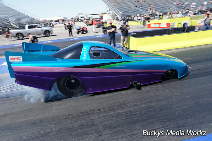 Pareso originally campaigned his ride originally as an altered that ran well into the 4-second zone in the 1/8-mile. The 1990 model, 125-inch Rowe chassis was updated in 2007 by JD2 Chassis and has worn its altered body for many years. Pareso recently decided it was time to mix it up with the racers in the FCC series, so he added a Camaro Funny Car body to make the car legal.