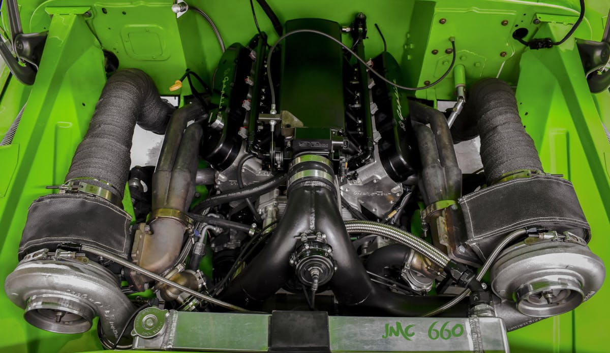 Rather than another big-block with a carburetor, Cox opted for a 427 LS with twin BorgWarner 76mm turbos
