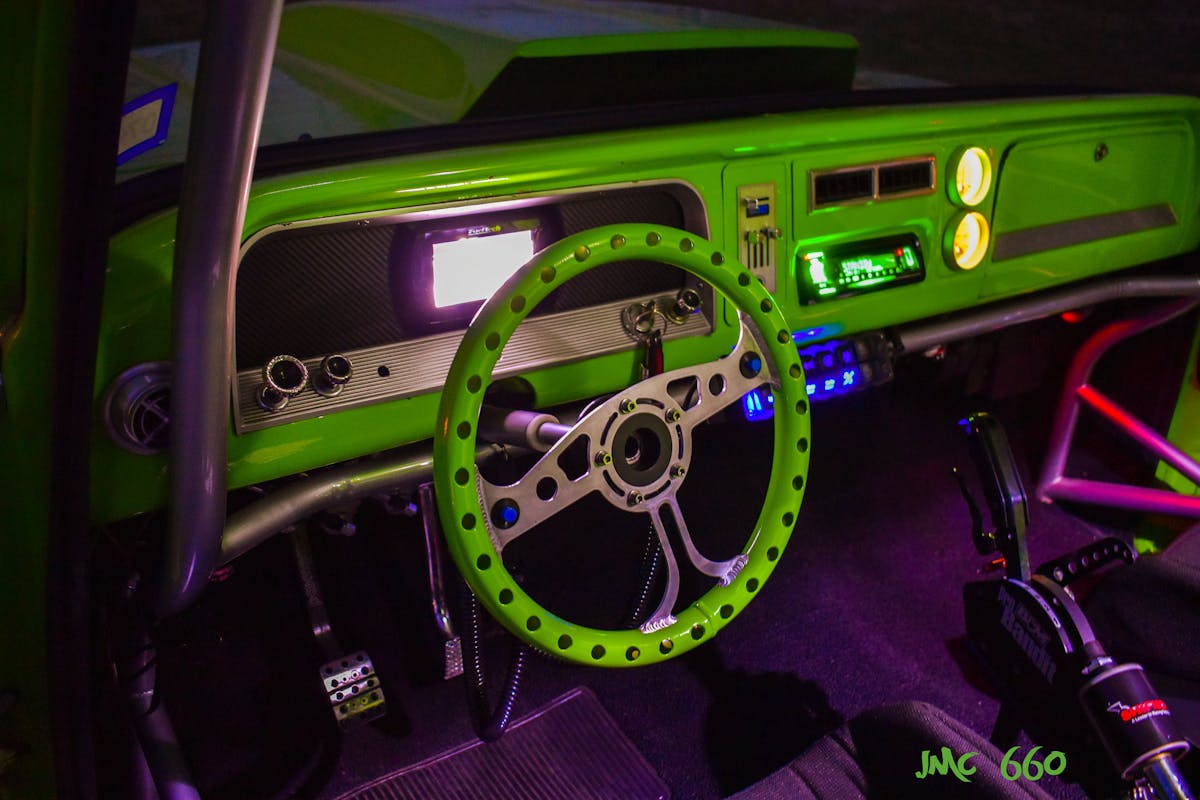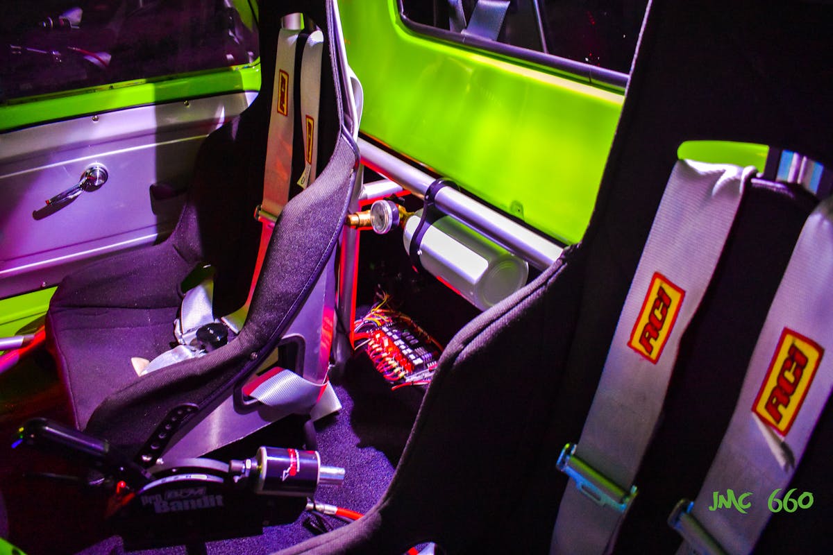 The color is officially Turn Signal Green, and as an offset color, Cox had the roll cage professionally finished in a silver hue.