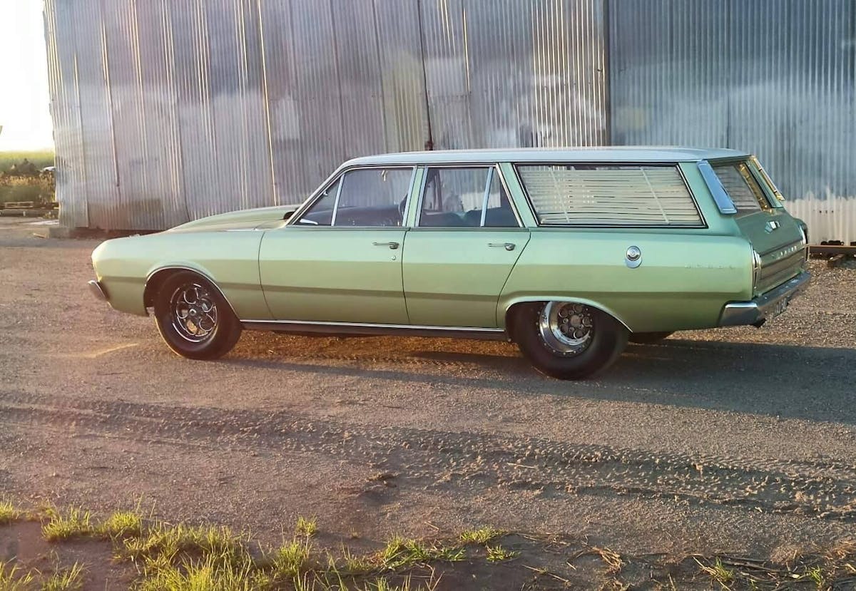 Sharpe has transformed a run-of-the-mill 1970 Valiant Regal station wagon into a grocery-getter that’s ready to run, complete with a big-block for power and a racing-focused touch from front to rear.