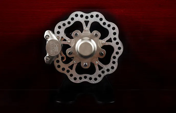 The Revolution rotor combines its eye-catching design, engineering, materials, and proprietary coatings to create a high-performance braking system when combined with its other parts.