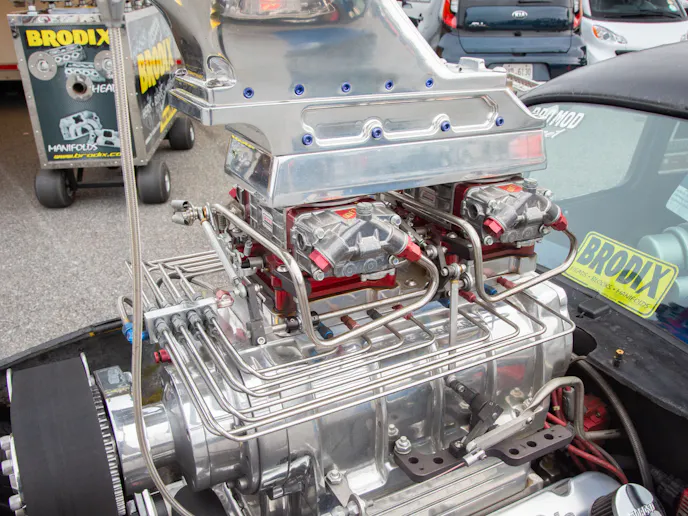Powering the Beetle is 496 cubic-inches of big-block Chevrolet power. Inside the engine, Mike used an Eagle crankshaft and connecting rods along with JE Pistons. To finish the engine off, Mike added a set of Brodix cylinder heads, a COMP Cams camshaft, Dyers 8:71 blower, a pair of 750cfm Quickfuel carburetors, and a 500-horsepower shot of nitrous for good measure. Behind the engine is a TH400 built by Richard Godley and a Hughes torque converter.