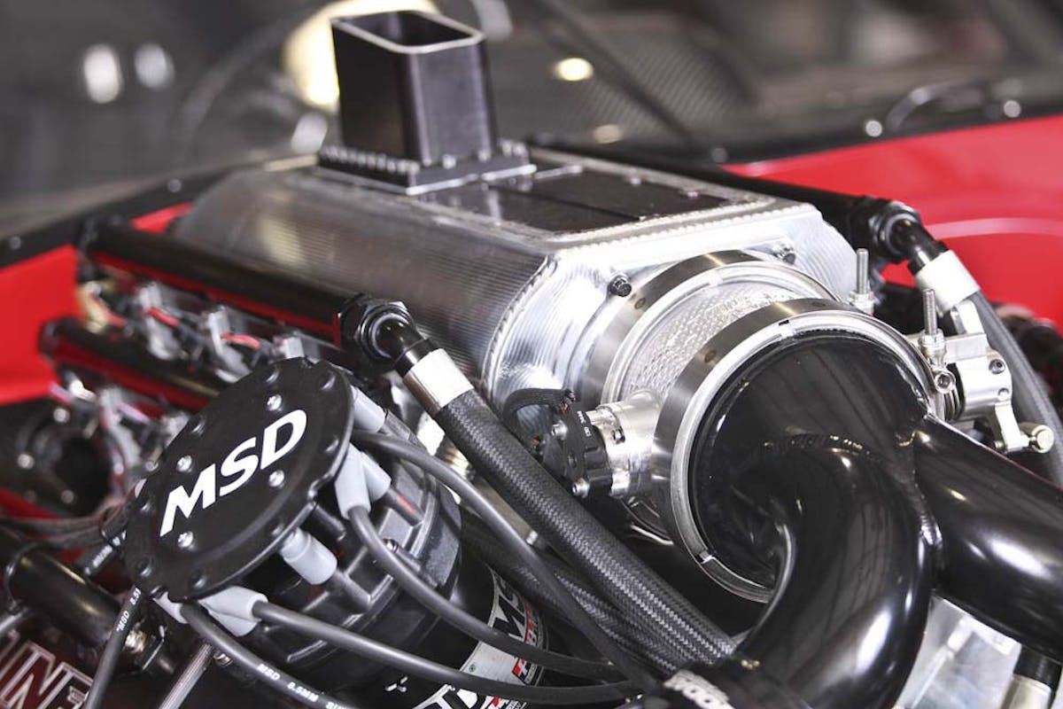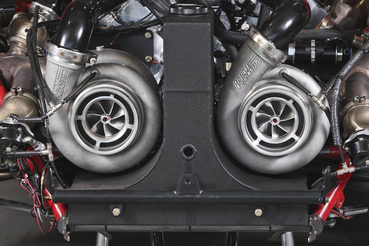 Twin 102 mm Precision turbos feeding a 572 cubic-inch 481X from Pro Line. Yeah, I just got chills too!