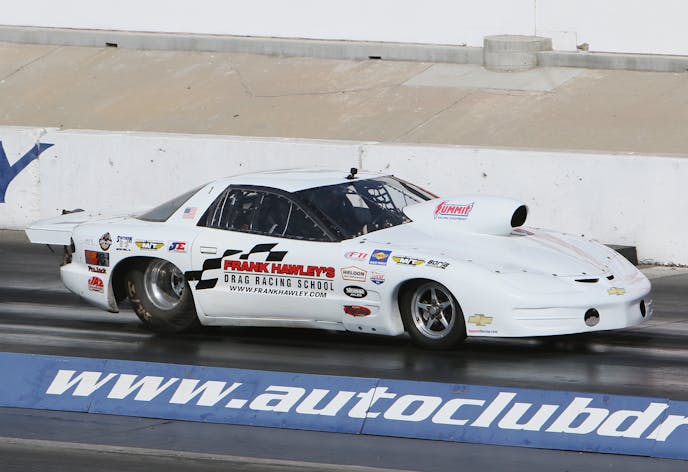 At 8:00 a.m. classroom time kicks off, and Frank explains that we will be running progressively further with each run – starting at 200 feet then 600, 1,000 and finally 1,320. “A lot of drag racing occurs at low speed.” He then ran us through the procedure: stage, foot brake to the second light, click the transbrake, release the foot brake and floor the throttle, and then let go of the transbrake when the light turns yellow. Sounded simple enough. Believe it or not the key is to “slow down.” When the adrenaline starts pumping, it is very easy to rush through your procedure and miss something. The school’s Firebirds and dragsters have Powerglides with a time-based air shifter, triggered off the transbrake. Obviously, if you fail to use the transbrake, it won’t shift. Another mistake, which is even more common, is that the foot can follow the hand when you let go of the transbrake – meaning you let up on the throttle. This takes conscious thought initially to reprogram your brain, but eventually will become muscle memory.