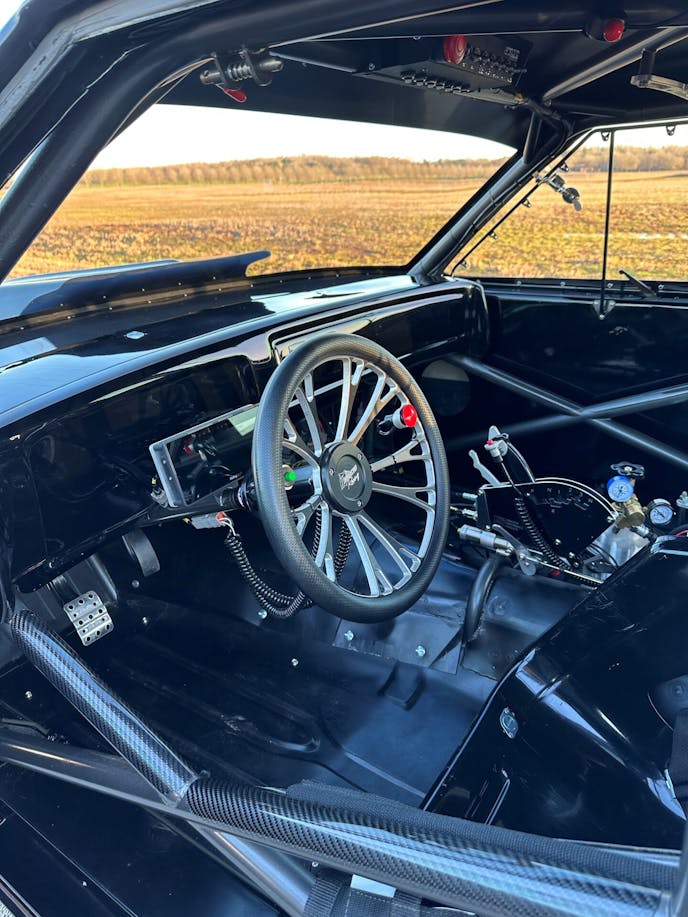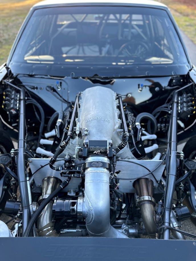 Under the hood, the Henderson family opted to run a small-block, single turbo configuration, and worked with Pete Harrell at Harrell Engine & Dyno in Mooresville, North Carolina, to put together the powerplant. Based on an LS platform, the 321 cubic-inch engine was filled with Ross pistons, R&R connecting rods, a Callies crankshaft, and a “special grind from HED” cam before its Jesel rocker-filled LS7-style heads were topped with a Holley intake manifold.