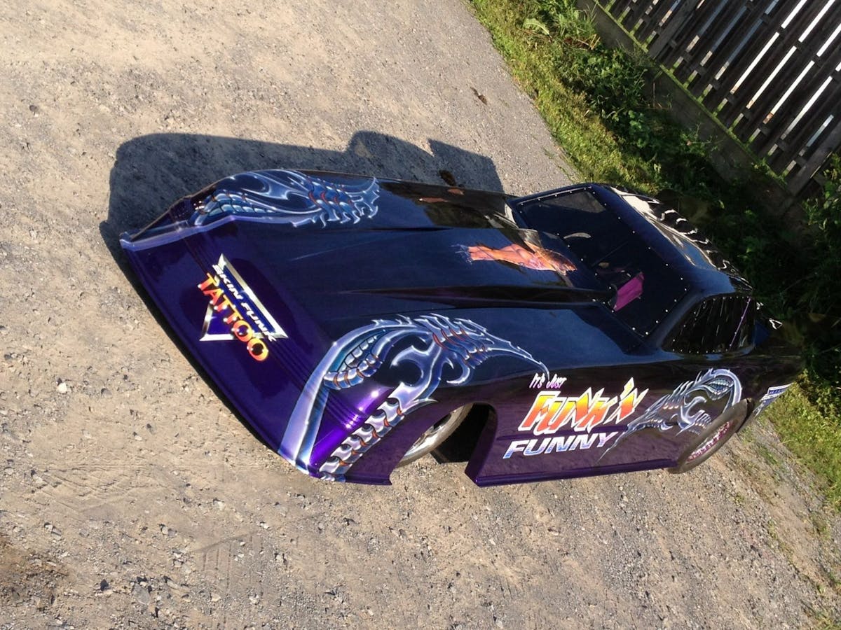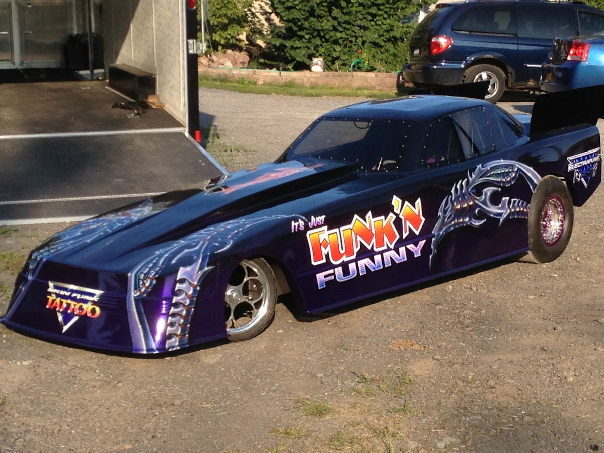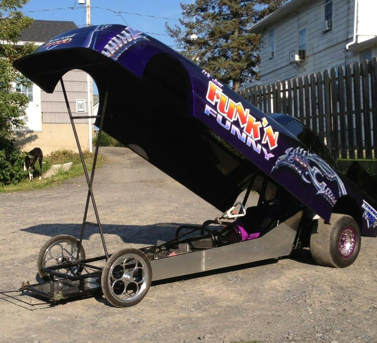 According to Disinger, this very car was one of three scale Funny Cars built in 1979 or 1980 that toured the country putting on exhibitions, but were either never sanctioned by the NHRA to compete, or had their sanction revoked. Although information is conflicting, Disinger believes they were run on motorcycle engines or snowmobile power at the time. They were eventually parked and sold, with this particular car falling into Disinger’s hands decades later.