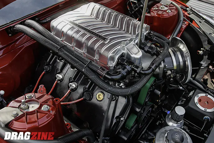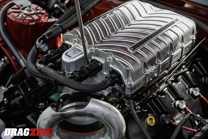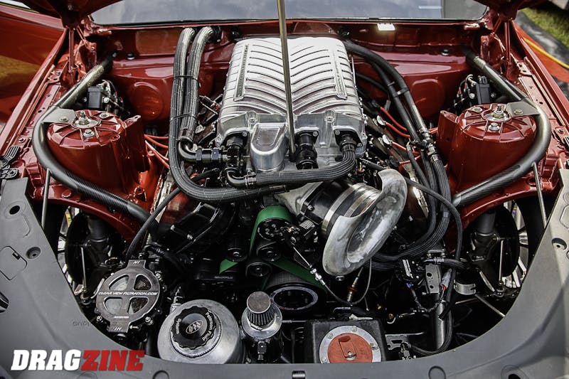 Fuel flows courtesy of a complete Aeromotive system and is delivered through a set of 170-pound/hour injectors. Finally, the engine’s dry sump oiling system, complete with a billet pan from Dailey Engineering, ensures critical components stay cool and lubricated while the Whipple supercharger brings a whopping 22 psi of boost to the party via a 150 mm throttle body.