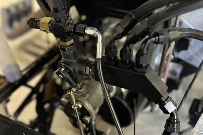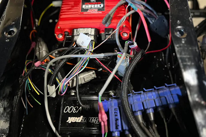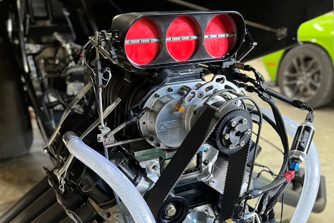 Other incidentals on the Chevy include an Aerospace Components two-speed billet shifter and a K&R Performance Engineering onboard air pump to shift the Funny Car. A Holley Performance/MSD Grid ignition system works with a Racepak V-300 datalogger and dash.